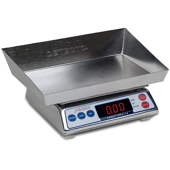 Detecto packs a lot into its compact wet diaper/lap sponge scale, designed to answer your every need in measuring fluid output. Stainless steel construction makes the removable tray, measuring 9 L x 6 W x 2 H inch (229 L x 152 W x 51 H mm), a snap to clean - a major consideration in the nursery where repeated use is the rule. Time is also precious around newborns, and this scale helps you make the most of it with an instantaneous display of 0.5 inch (13mm) high red digits. Handy push-button tare simplifies weight determinations. 4,000 g x 1 g capacity.